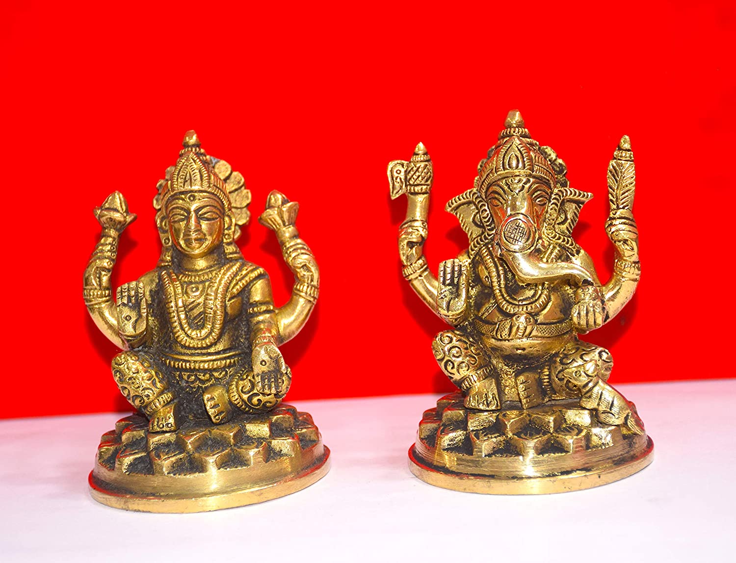 Brass Ganesha Laxmi Ganesh Lakshmi Bhagwan Idol