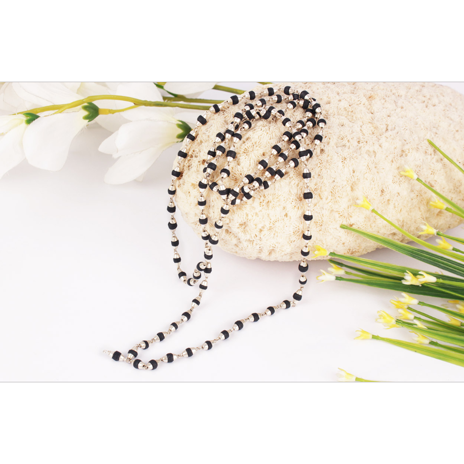 This mala features black Tulsi beads capped with silver, making it not only spiritually significant but also elegant to wear.